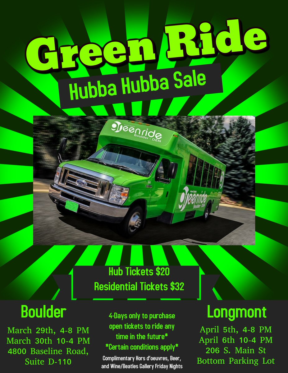 Service Areas - GreenRide Boulder AIRPORT PICKUP LOCATION: East side of Level 5 on the curb directly outside door 517. Home. Schedules. Schedule to Boulder. Schedule to DEN (DIA) DIA Shuttle. Service Areas. Pricing. At the Airport. Green Ride Colorado Green Car Service Green Ride will have the perfect vehicle for your cultivated taste. Company Information Green Ride Colorado. Contact us: support@greenrideco.com. Subpages (9): Company Information Employment at Green Ride. Green Ride Boulder Promo Codes & Deals - Couponannie Green Ride Boulder Coupon Codes and Promo Deals 2022 Used 9 Times Get Code See Details 60 % OFF Flash Sale! Up To 60% Off at Green Ride Boulder View Sale See Details 5 % OFF Extra 5% Off Your Entire Order Used 3 Times View Sale See Details 15 % OFF Green Ride Boulder Offer: Save 15% on Your First Order Used 7 Times View Sale See Details 10 % OFF